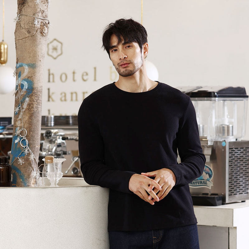 黑沧社/慵懒风圆领内搭长袖低领打底衫男高级感松弛感纯色垂感T恤