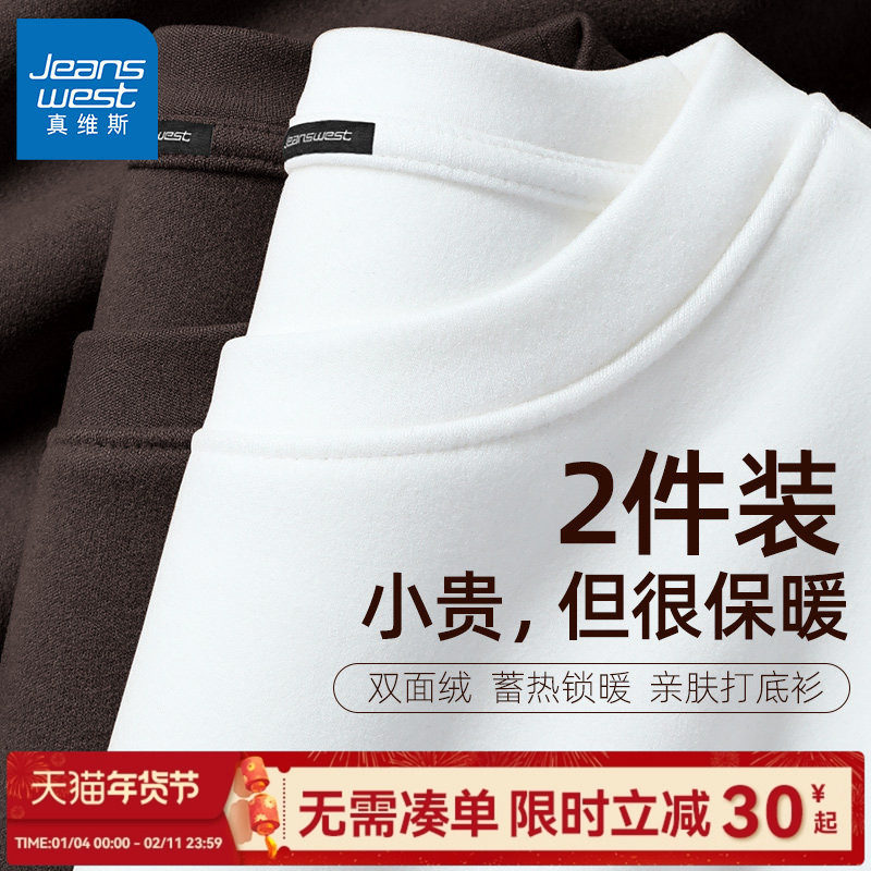 GV真维斯双面绒打底衫男冬加绒男士长袖t恤内搭低领保暖秋衣男款C