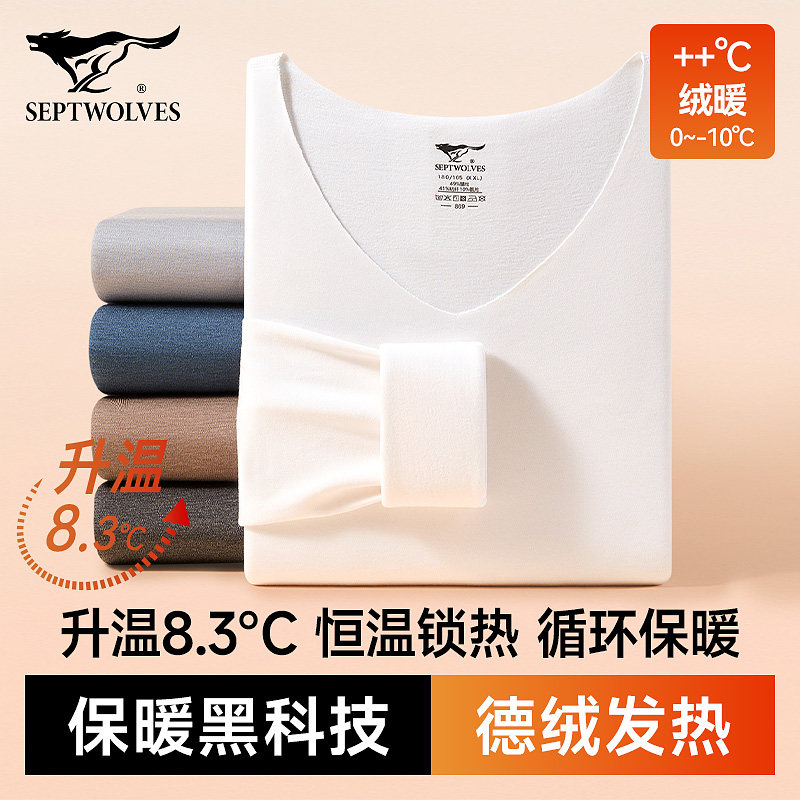 七匹狼德绒发热打底衫男款低领无痕加厚保暖内搭白色男士长袖t恤