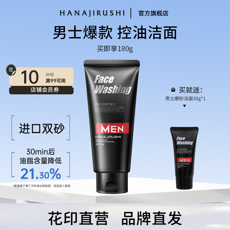 花印男士洗面奶洁面乳黑白磨砂控油清洁毛孔平衡水油原装进口正品
