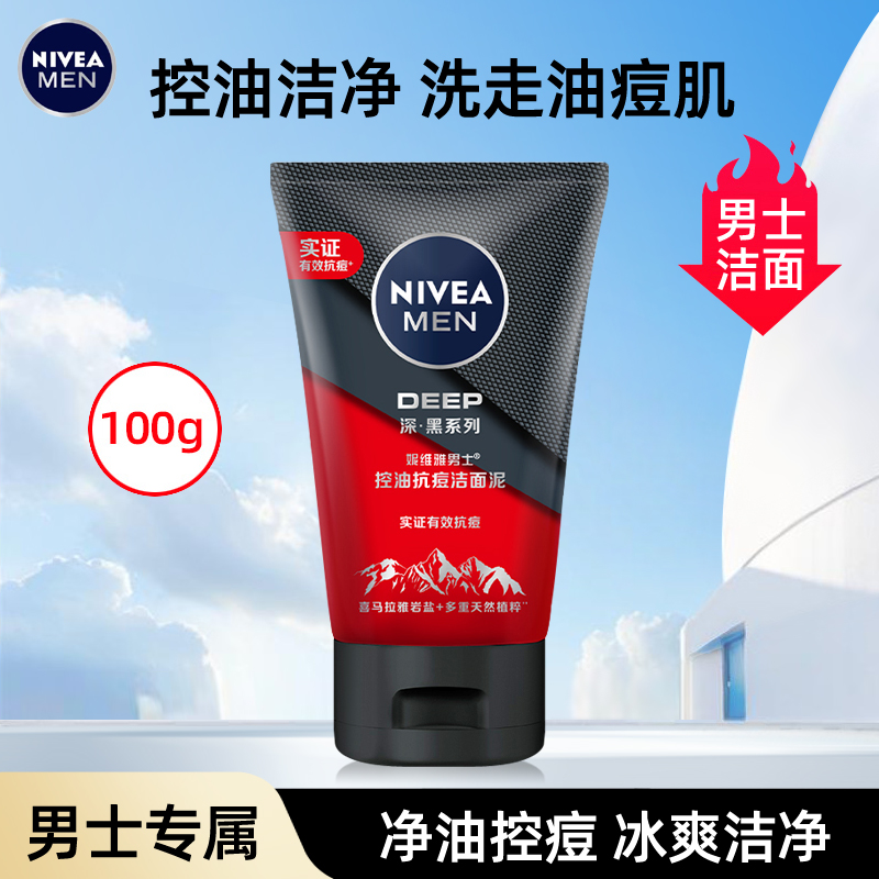 妮维雅男士洗面奶洁面乳喜马拉雅岩盐深控油抗痘洁面泥100g清洁