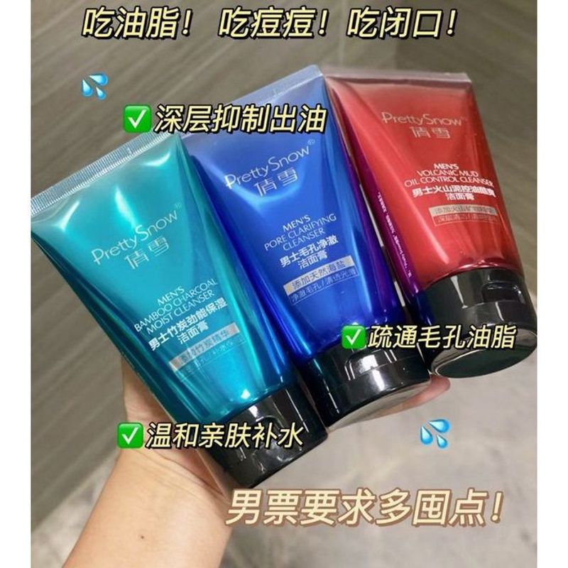 正品倩雪男士洗面奶洁面膏竹炭火山泥控油毛孔净澈劲能保湿清爽控