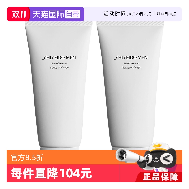 【自营】资生堂男士洗面奶洁面膏125ml*2支 清爽控油保湿清洁