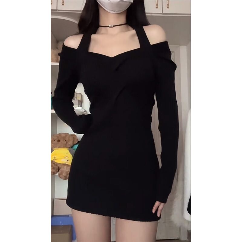 - 一字领露肩连衣裙女