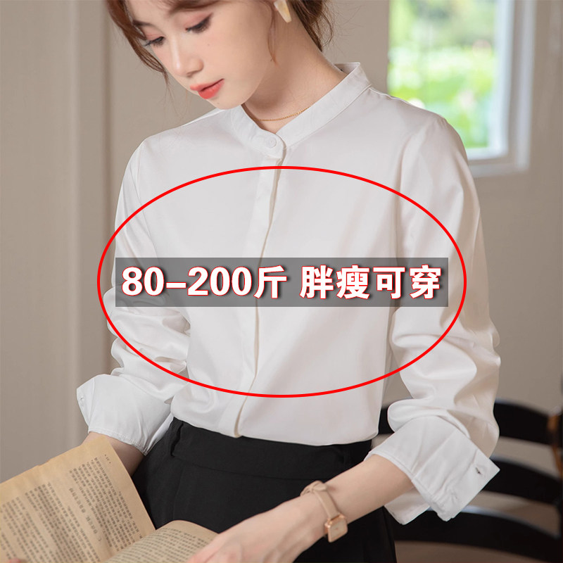 高级感抗皱白色衬衫女秋季大码气质宽松显瘦长袖通勤职业立领衬衣