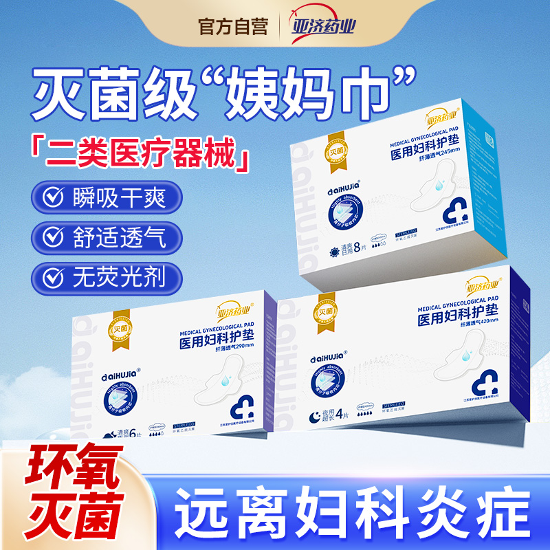 亚济药业医用级妇科护理垫非卫生巾械字号灭菌姨妈巾日夜官方旗舰