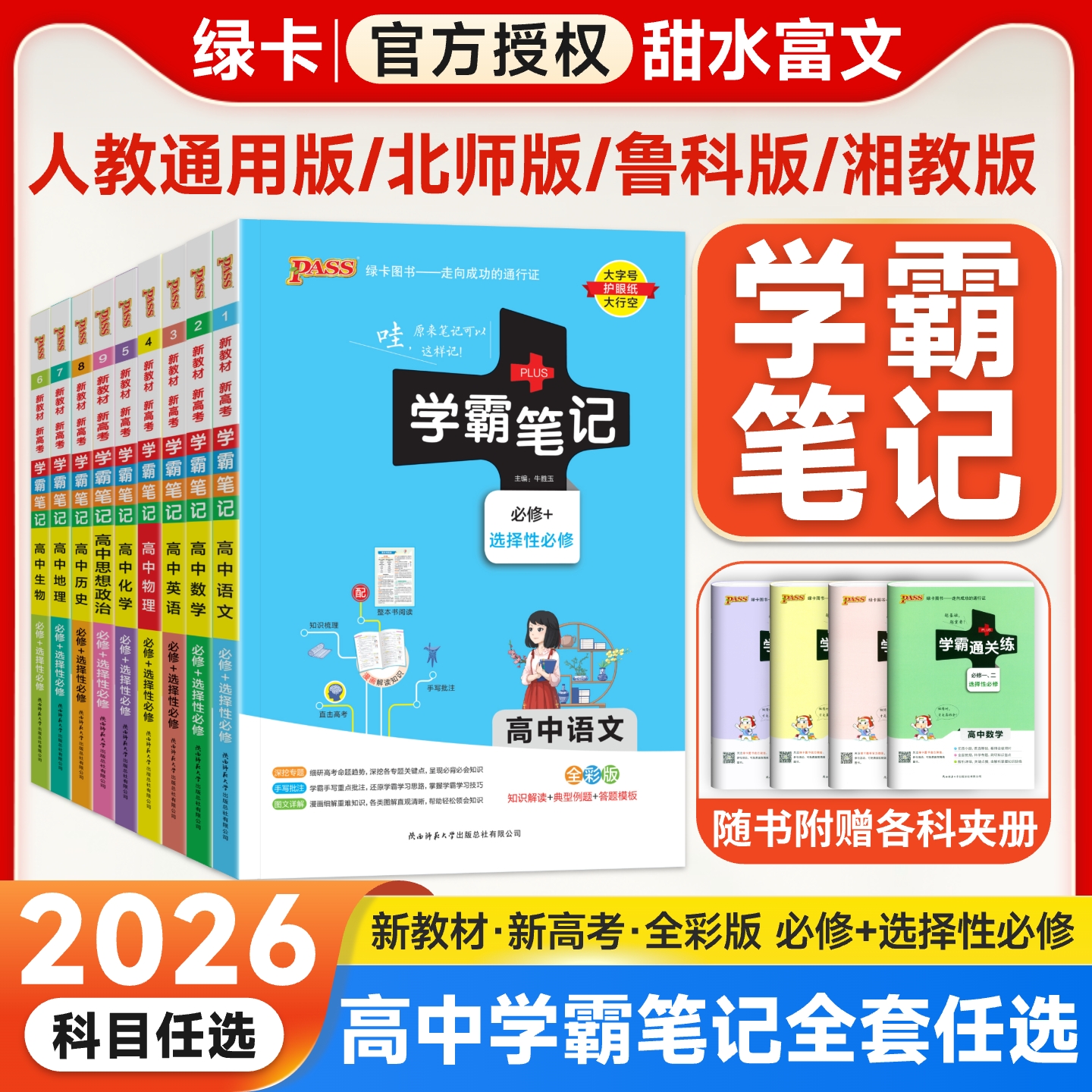 2026学霸笔记高中数学物理化学生物语文英语政治历史地理文言文人教北师湘教鲁科版高一高二高三必修选修高考总复习资料书pass绿卡