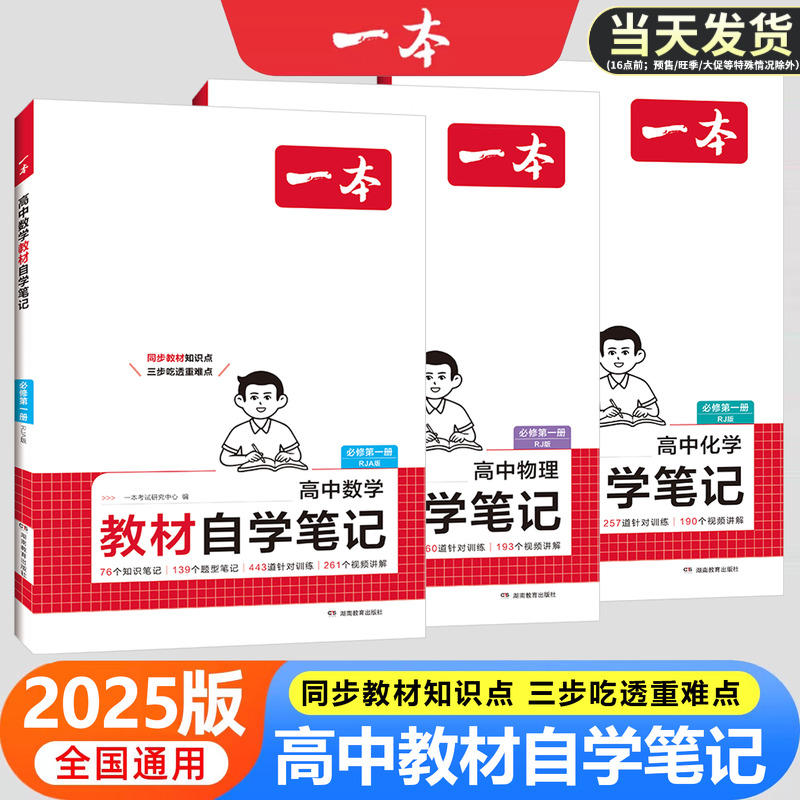 2025年秋季一本高中数学物理化学教材自学笔记必修第一册RJ人教A版高一上册课内同步练习册预习课本学霸知识点题型针对专项训练题
