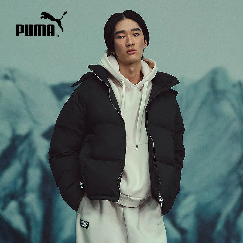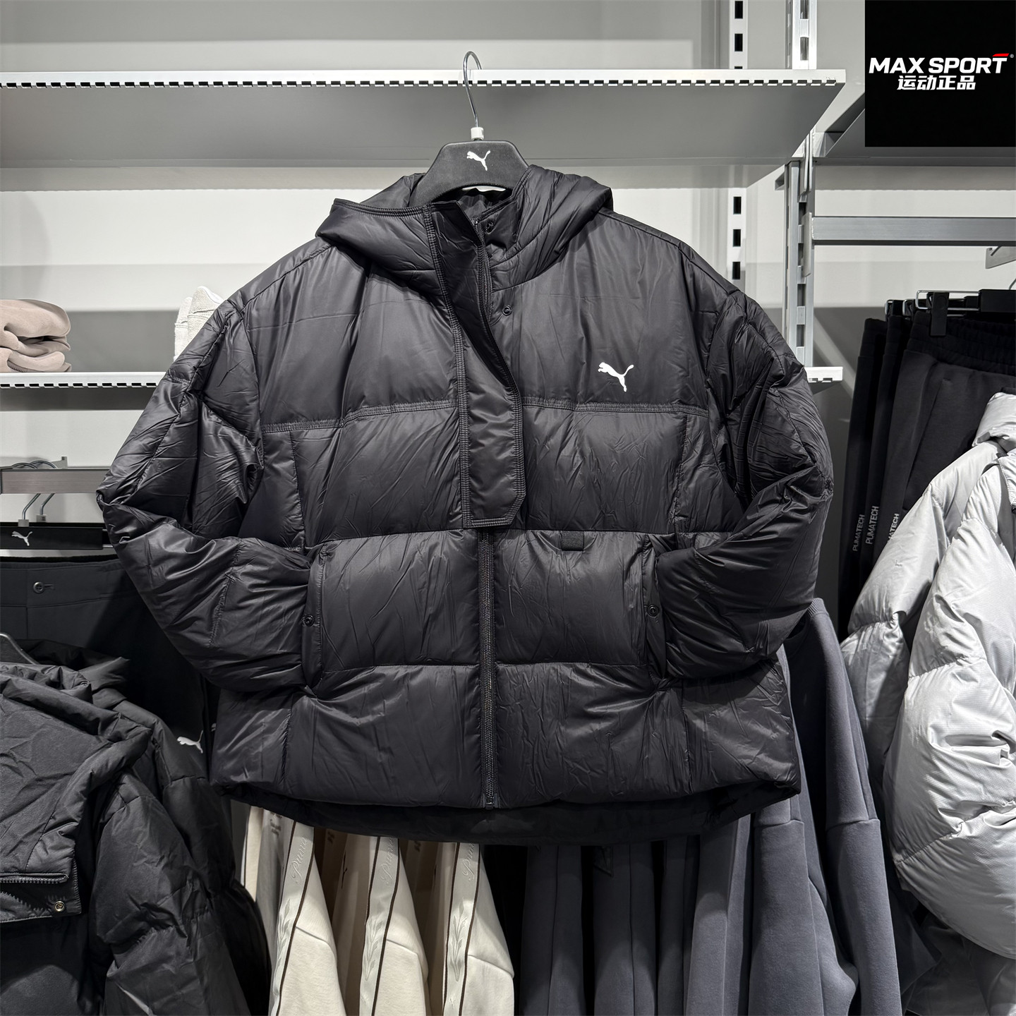 PUMA彪马女子羽绒服25冬新款户外保暖黑色鸭绒外套连帽夹克691045