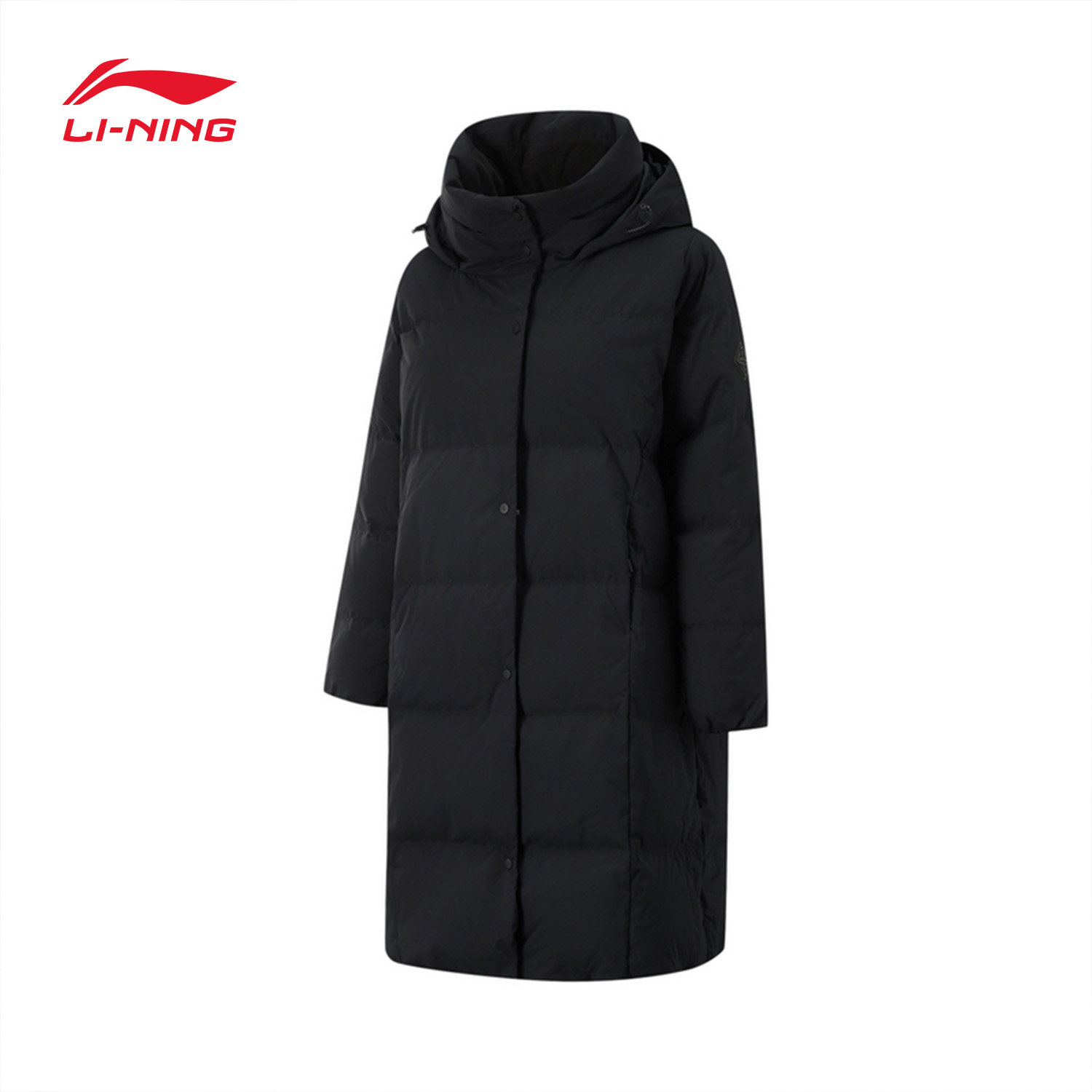 劲浪李宁女子运动必备运动休闲长款黑色保暖羽绒服外套AYMV208-1