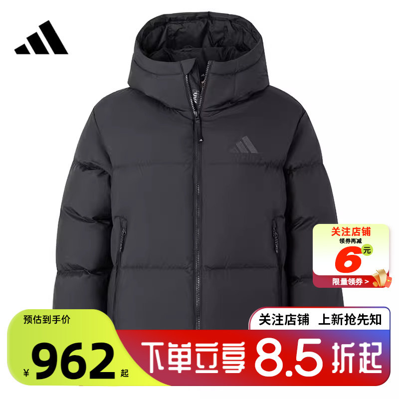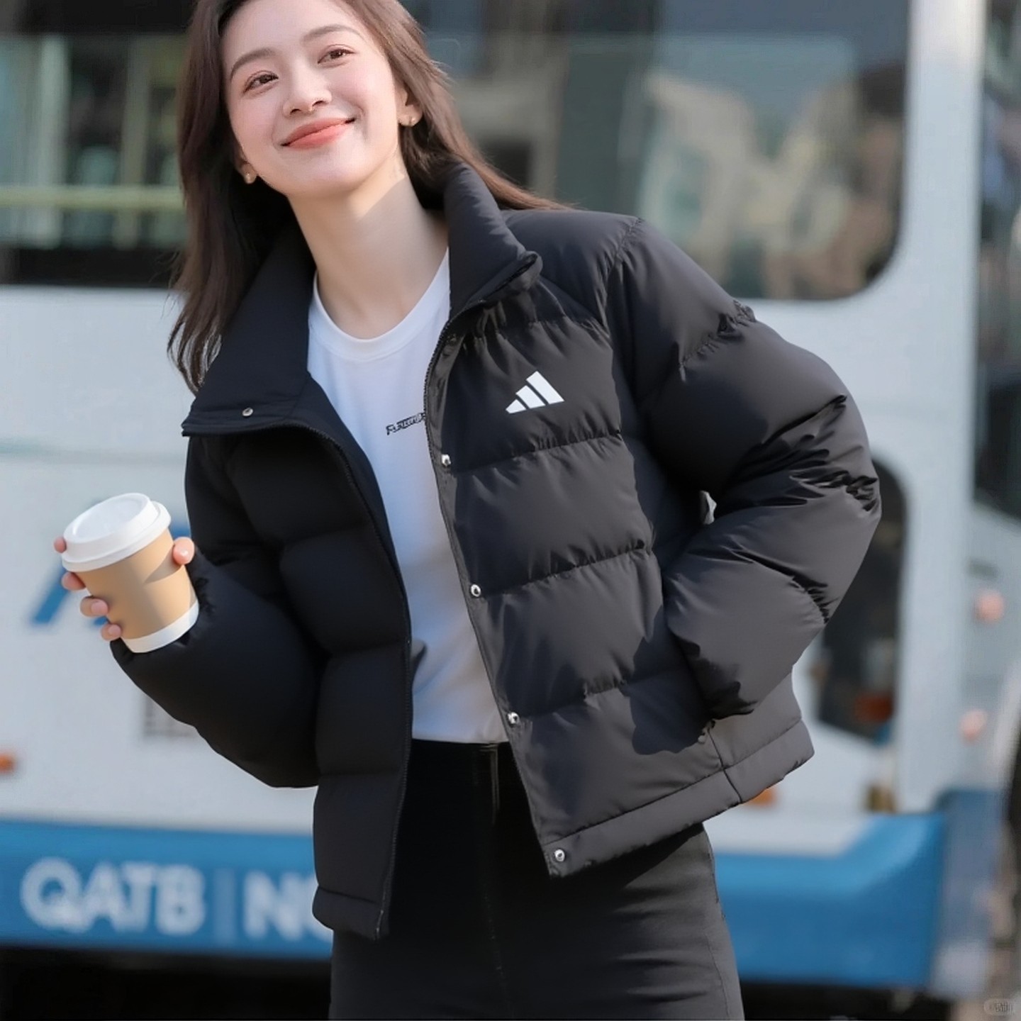 阿迪达斯羽绒服女子冬季立领宽松大码黑色面包服保暖外套【特卖】
