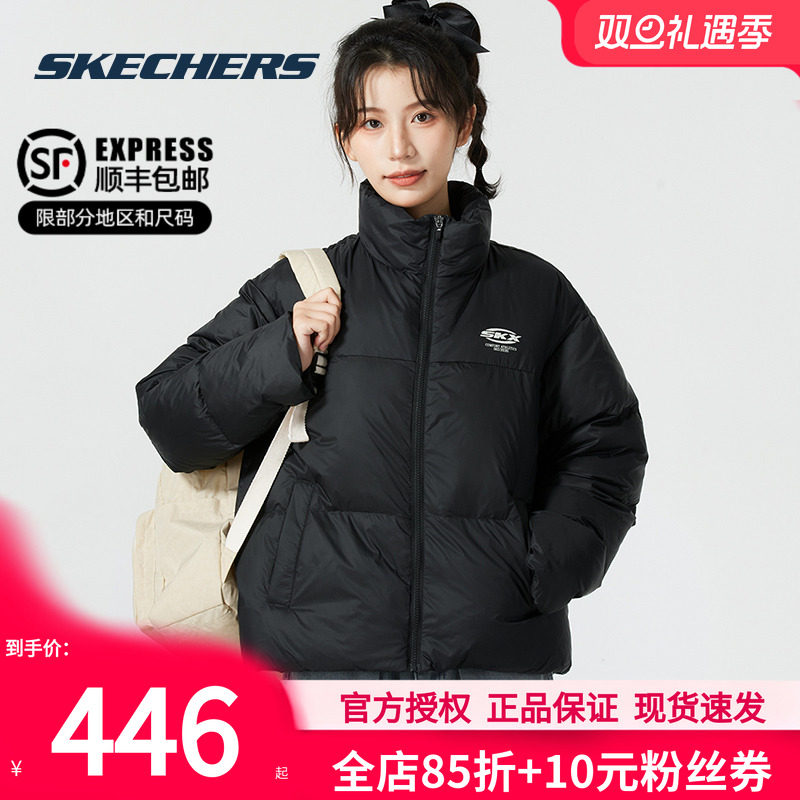 斯凯奇羽绒服女子保暖棉羽黑色冬季加绒羽绒外套官网女款运动棉服