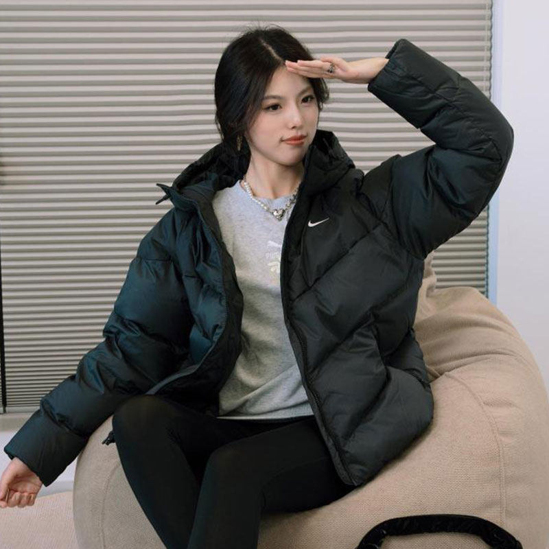 Nike耐克正品羽绒服女子黑色短款防风保暖运动夹克25冬新款厚外套