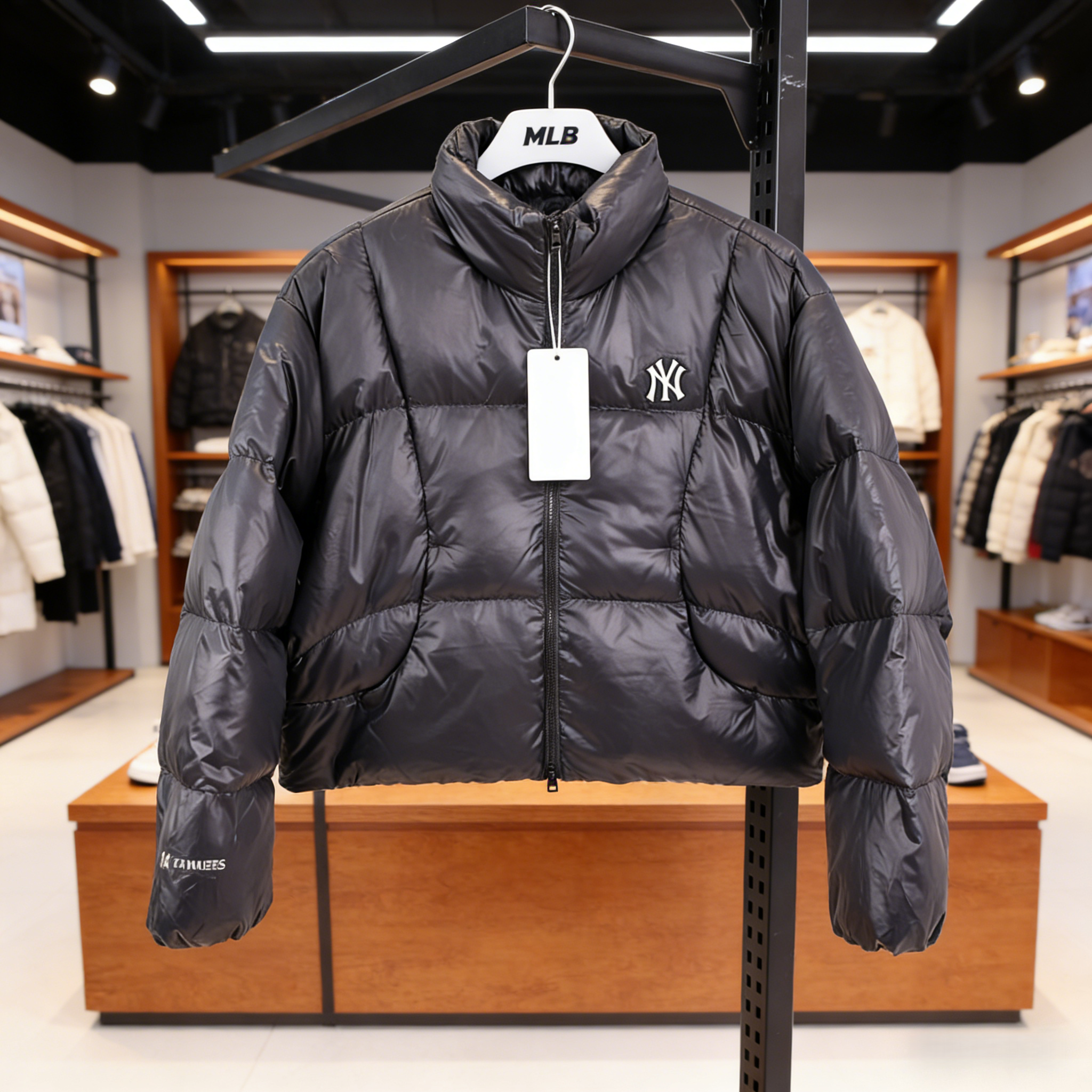 MLB立领羽绒服正品女子短款宽松保暖面包服黑色运动外套3FDJB2056