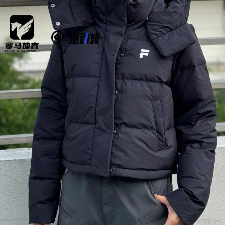 FILA斐乐FOB 黑色女子时尚百搭休闲短款连帽羽绒服T11W443908F-BK