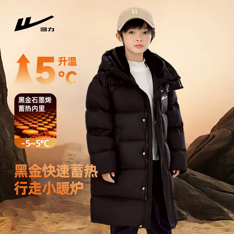 回力童装男童棉服2025冬季新款儿童加绒加厚长款棉袄女童冬装外套