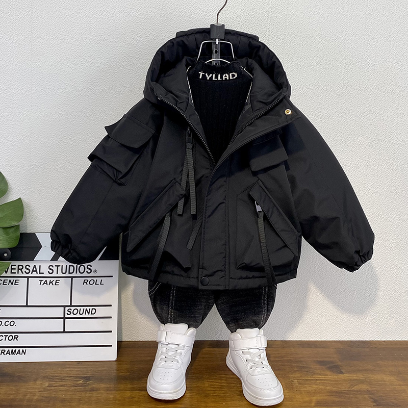 儿童冬装夹棉外套男童连帽棉服2025冬季新款小男孩保暖加厚棉衣潮