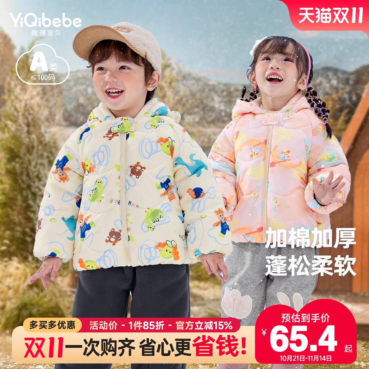 儿童棉袄冬季男童外套连帽夹棉小童童装宝宝棉服加厚女童保暖冬装