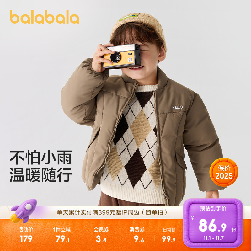 巴拉巴拉童装儿童外套男童棉服女童上衣新款2025秋冬装加厚舒适潮