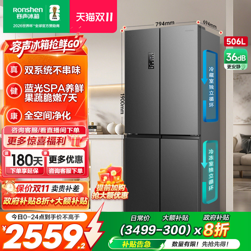 容声506L双系统循环冰箱十字对开双开四门大容量一级风冷无霜家用