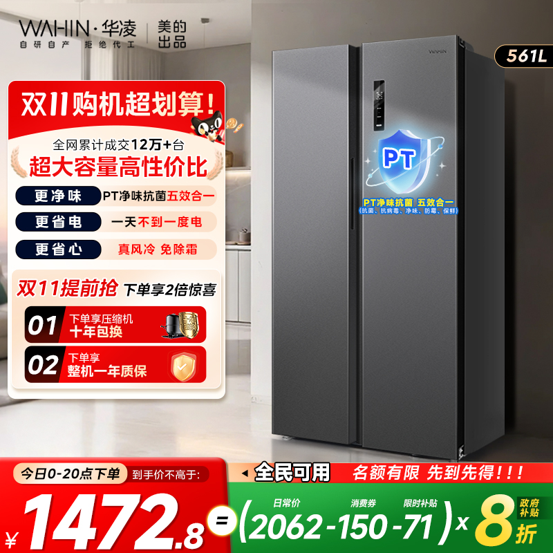 美的华凌589对开双开门冰箱风冷无霜大容量家用变频以旧换新补贴