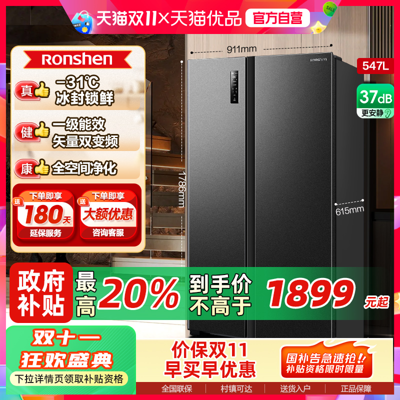 Ronshen/容声 BCD-547WD12HP双开门冰箱大容量家用散热节能电冰箱