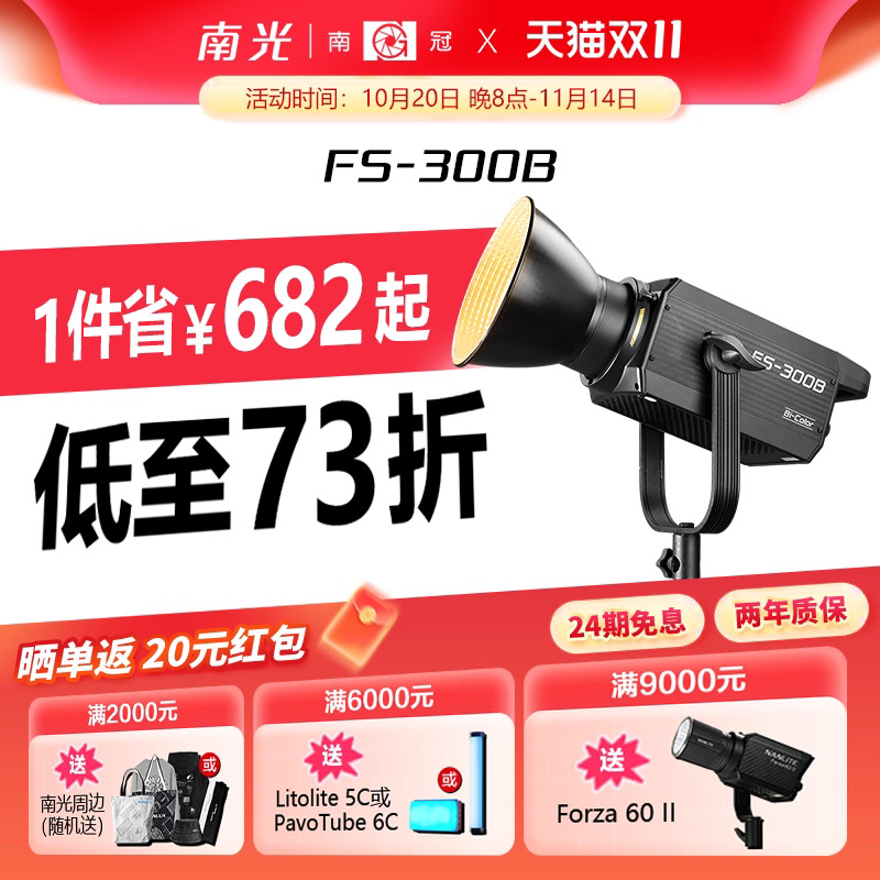 南光FS-300B双色温人像影棚摄影像补光灯常亮直播视频柔光灯
