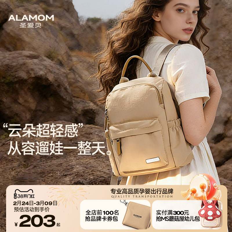 ALAMOM妈咪包小号高级感时尚双肩超轻便外出妈妈母婴包旅游通勤包