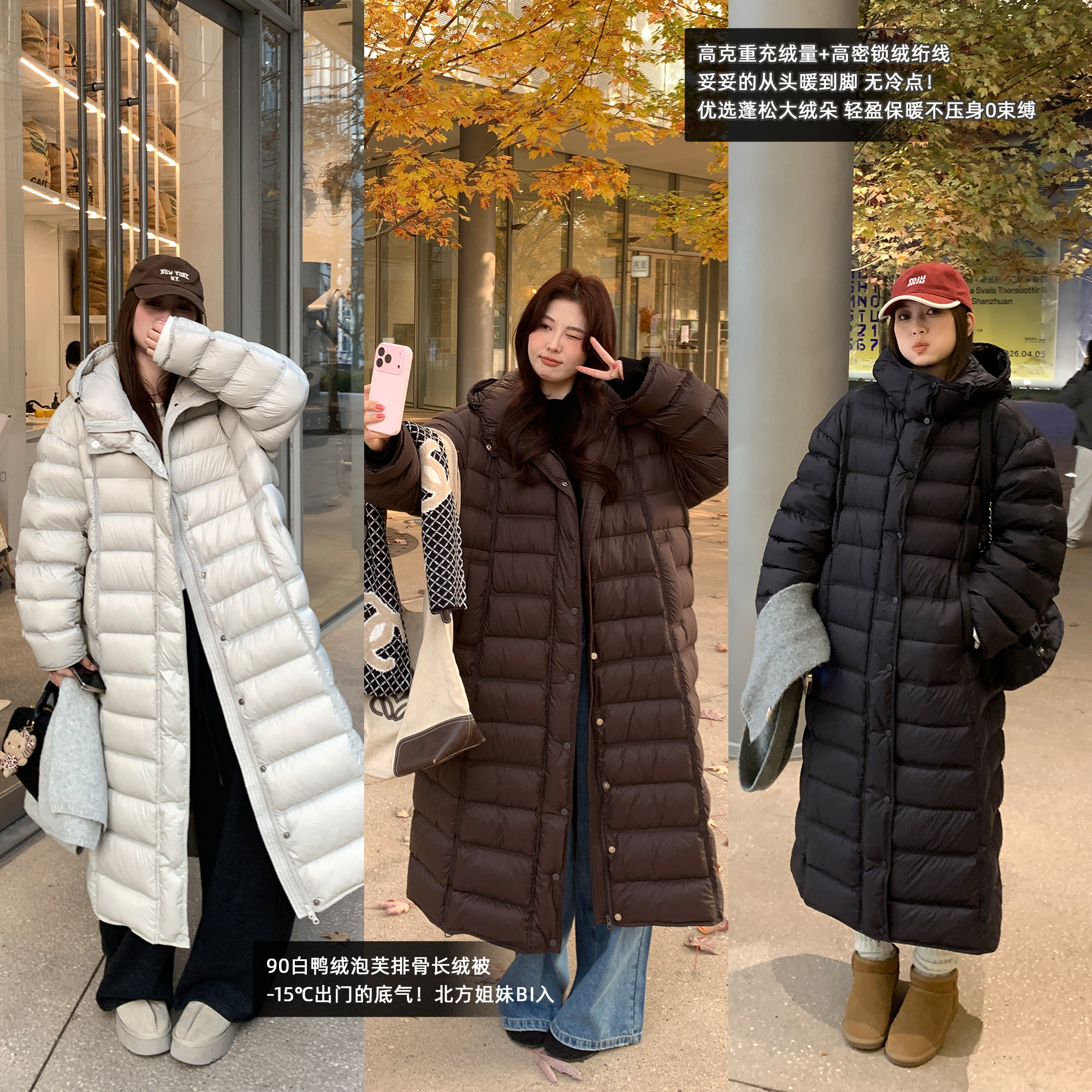 NAZ那子大码冬装90白鸭绒韩版长款过膝排骨泡芙连帽显瘦羽绒服女