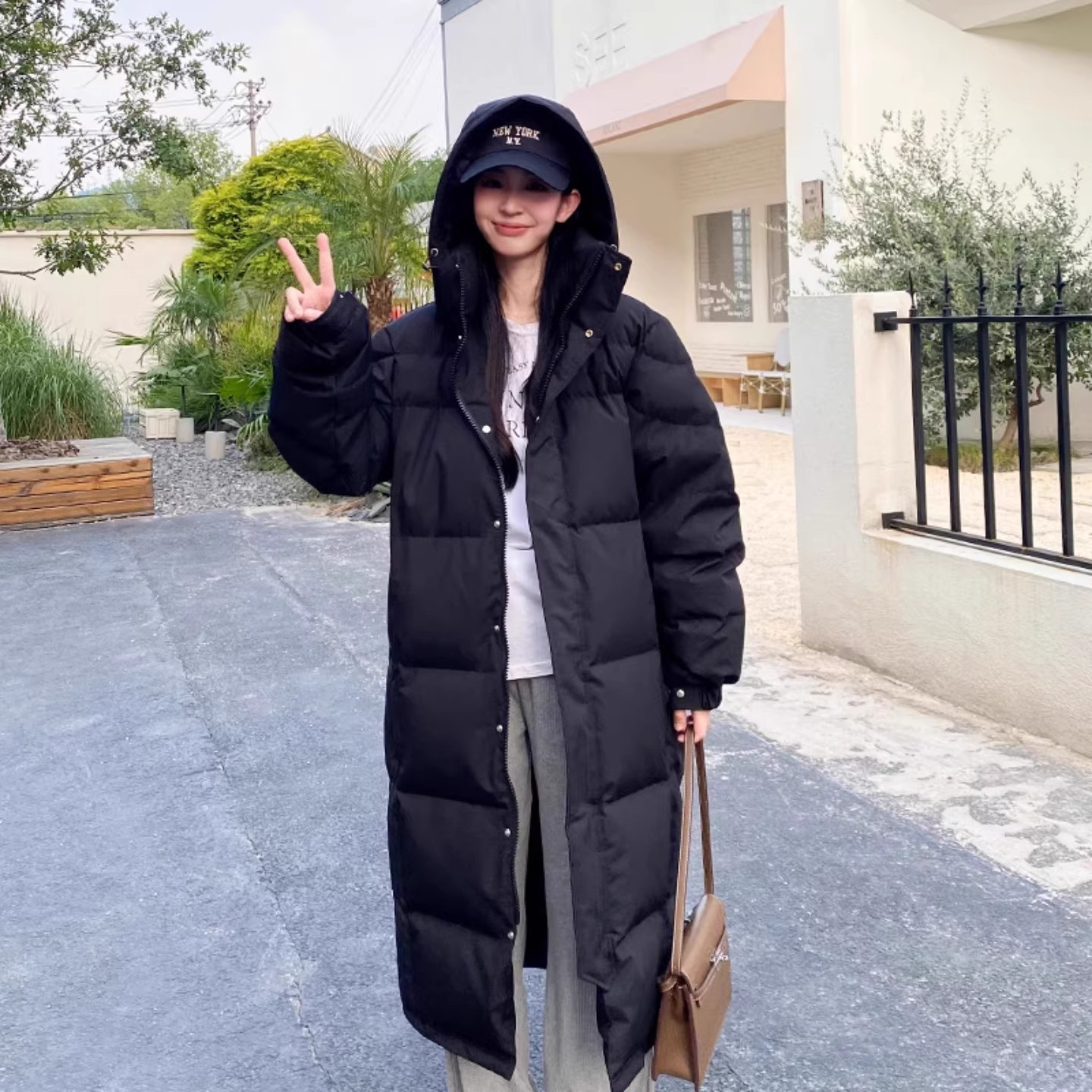 冬新款超好看连帽过膝棉袄大码加厚中长款羽绒棉衣女宽松棉服外套
