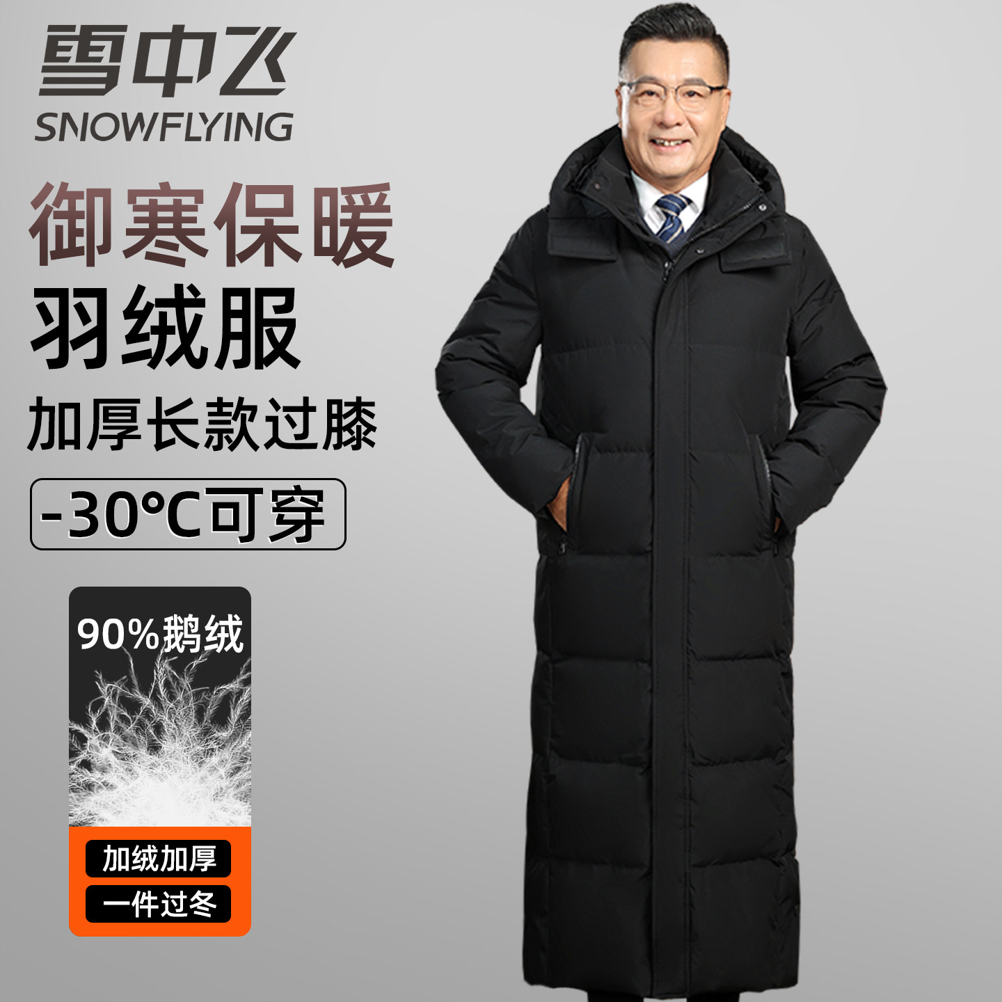 雪中飞中老年鹅绒服男士加长款过膝加厚羽绒服宽松大码爸爸装外套