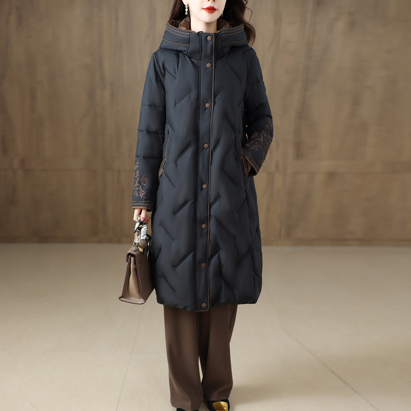 长款过膝加厚羽绒服女2025冬季高端妈妈装大码复古刺绣鹅绒服外套