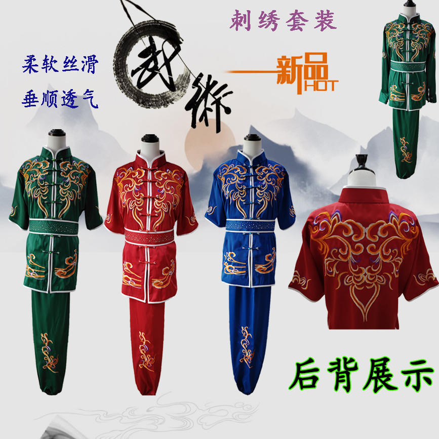 儿童武术服真丝绸刺绣龙练功表演服演出比赛长拳南拳成人舞龙彩服