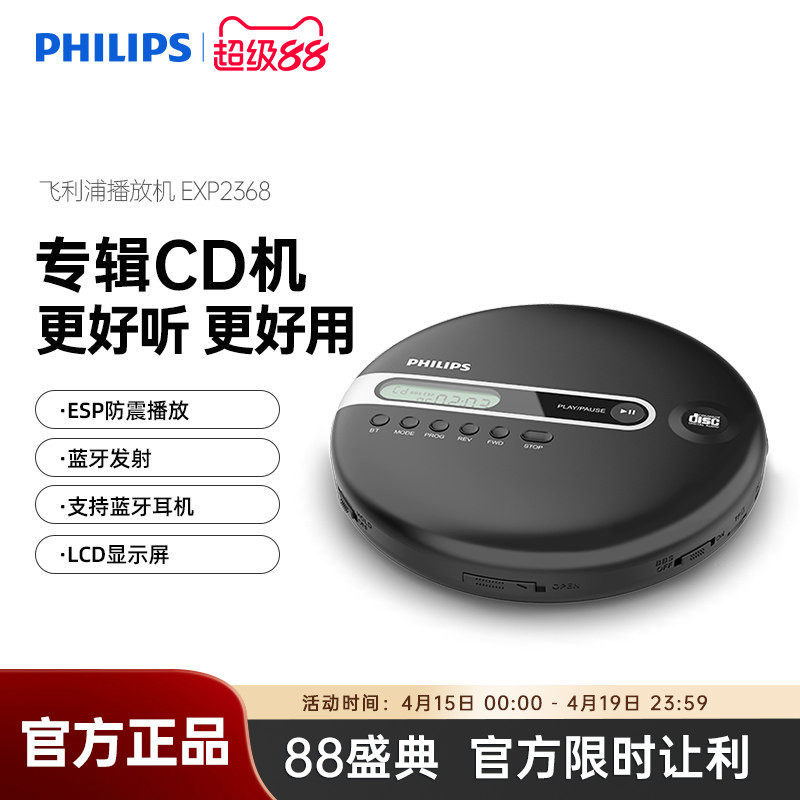 飞利浦EXP2368家用CD播放机便携式蓝牙发射多功能光盘随身音乐MP3