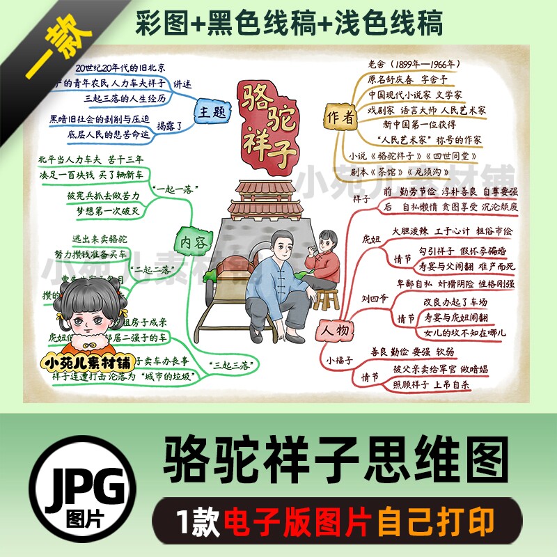 B546骆驼祥子模板阅读思维导图电子版彩图线稿自己打印不发快递
