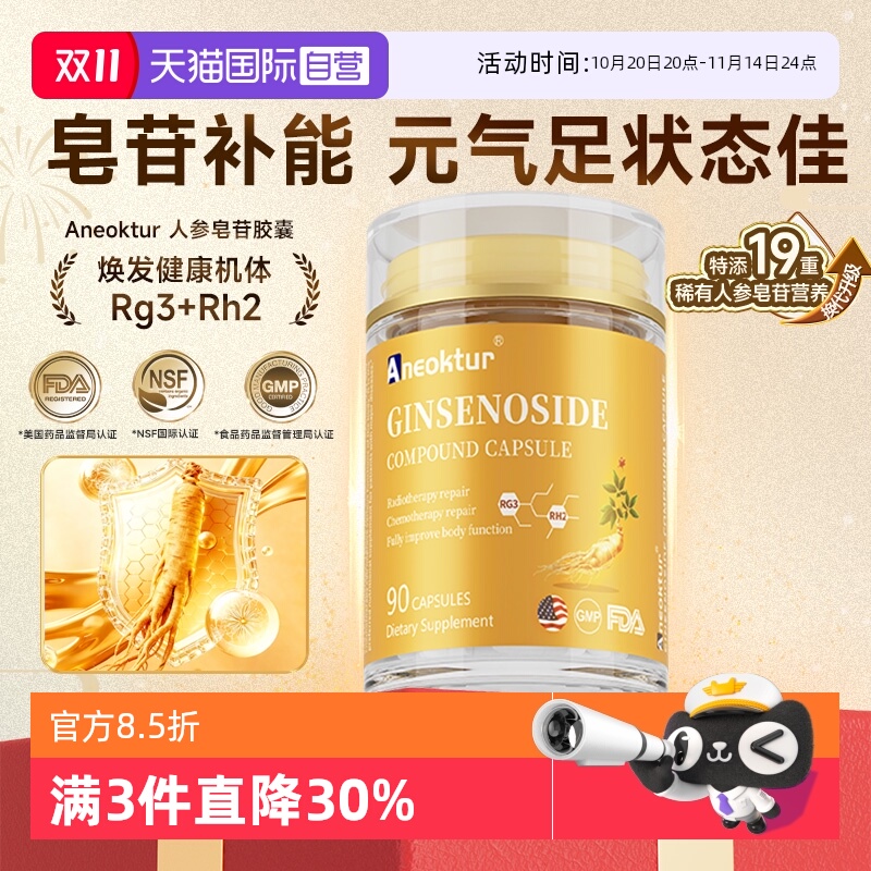源珂人参皂苷rg3护人参皂苷正品人参皂苷rh2素营养品可搭西洋参