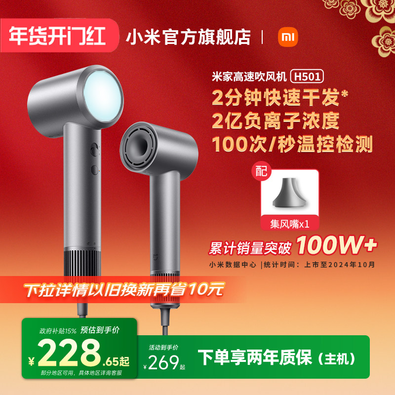 小米官旗米家高速吹风机H501家用负离子护发电吹风筒情人节礼物