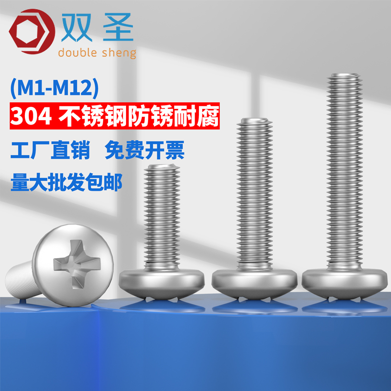 304不锈钢十字圆头螺丝机螺钉盘头螺栓开关插座螺钉M2M3M4M5M6M8