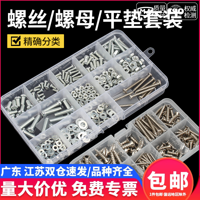 混装螺丝螺母组合套装大全圆头十字盘头螺钉螺帽垫片自攻螺丝盒装