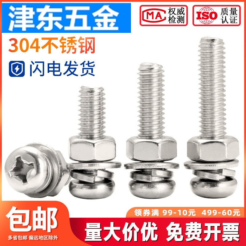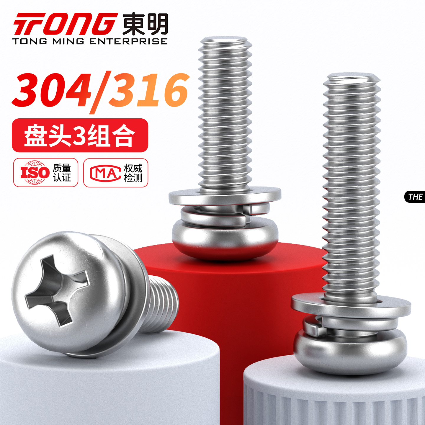 304/316不锈钢圆头螺丝弹垫片三组合十字盘头螺钉M3M4M5M6M8东明