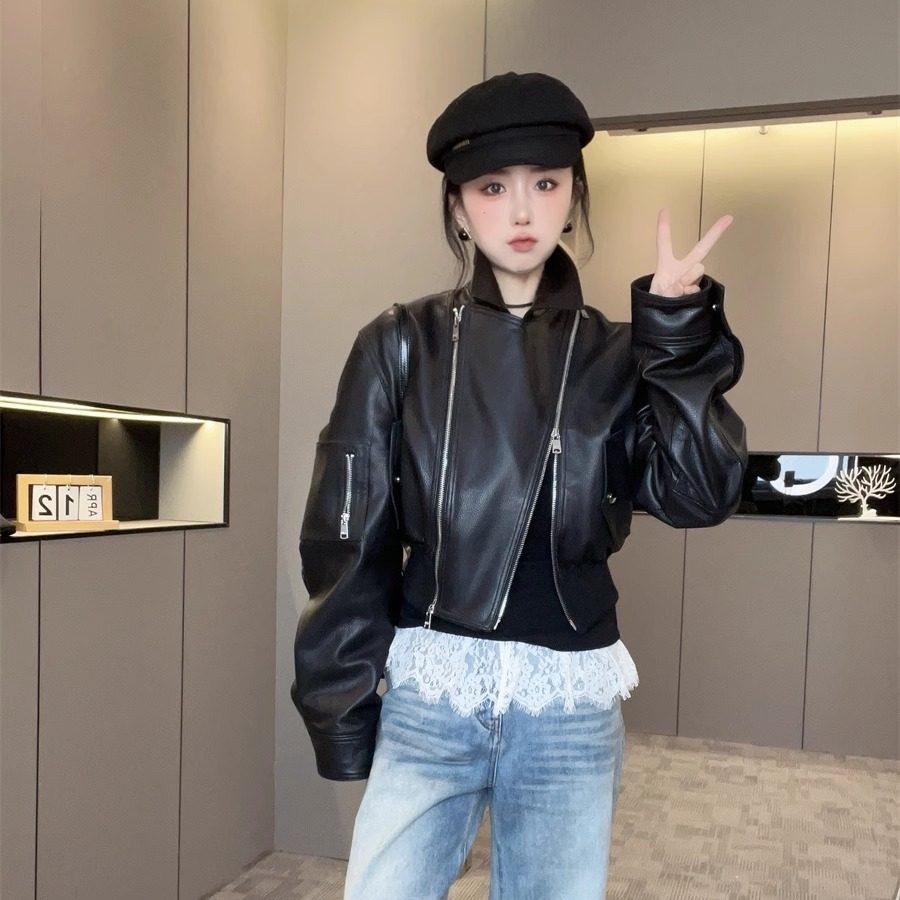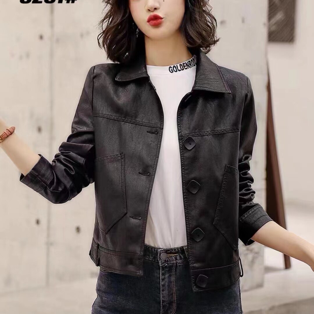 - 皮衣女短款 皮夹克