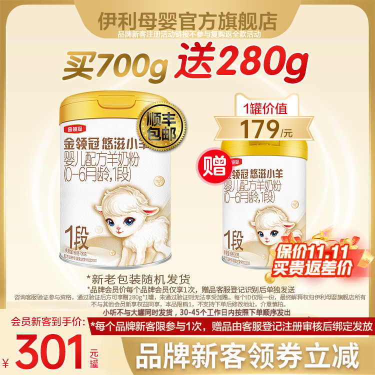 【品牌新客】伊利金领冠悠滋小羊1段新生婴儿羊奶粉700g+280g*1