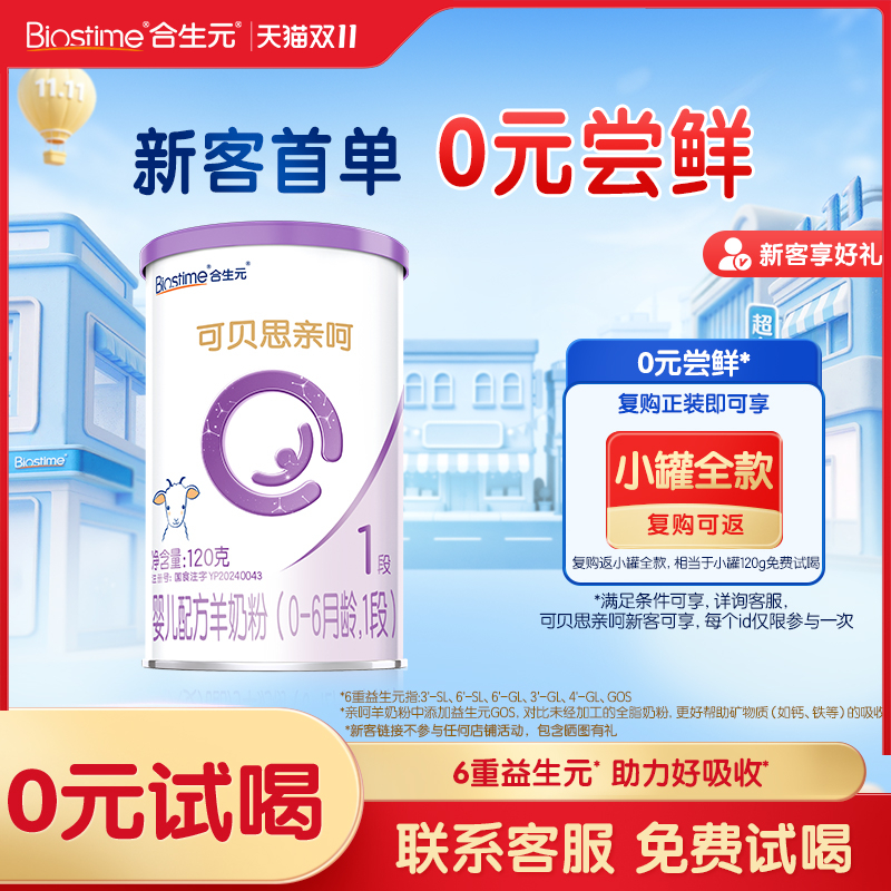【0元试喝】蓝河婴儿羊奶粉1段120g宝宝一段绵羊奶 0-6个月新生儿