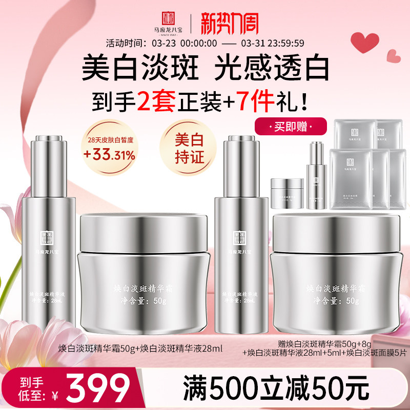 马应龙八宝美白淡斑面霜精华液祛斑焕亮提亮烟酰胺护肤品套装正品