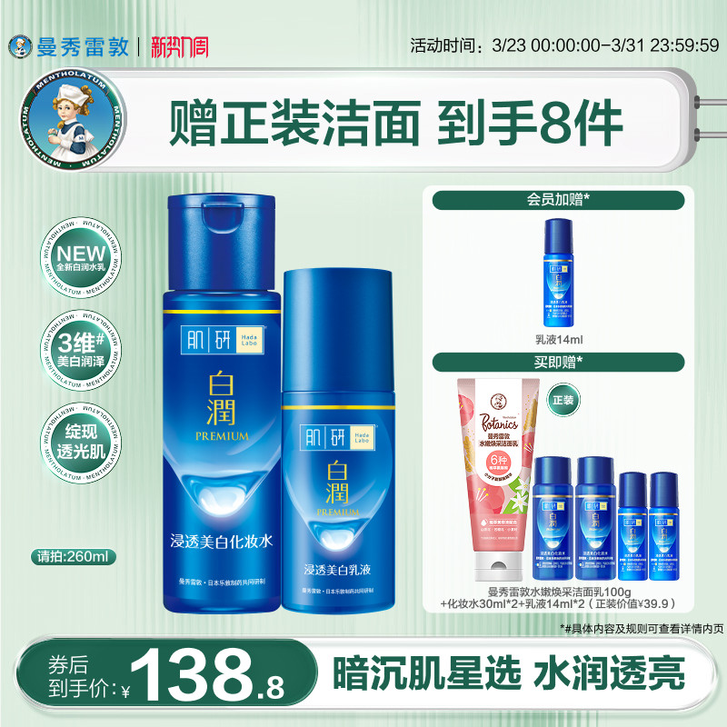 曼秀雷敦肌研白润水乳套装补水保湿祛斑美白修护化妆水乳液面霜女