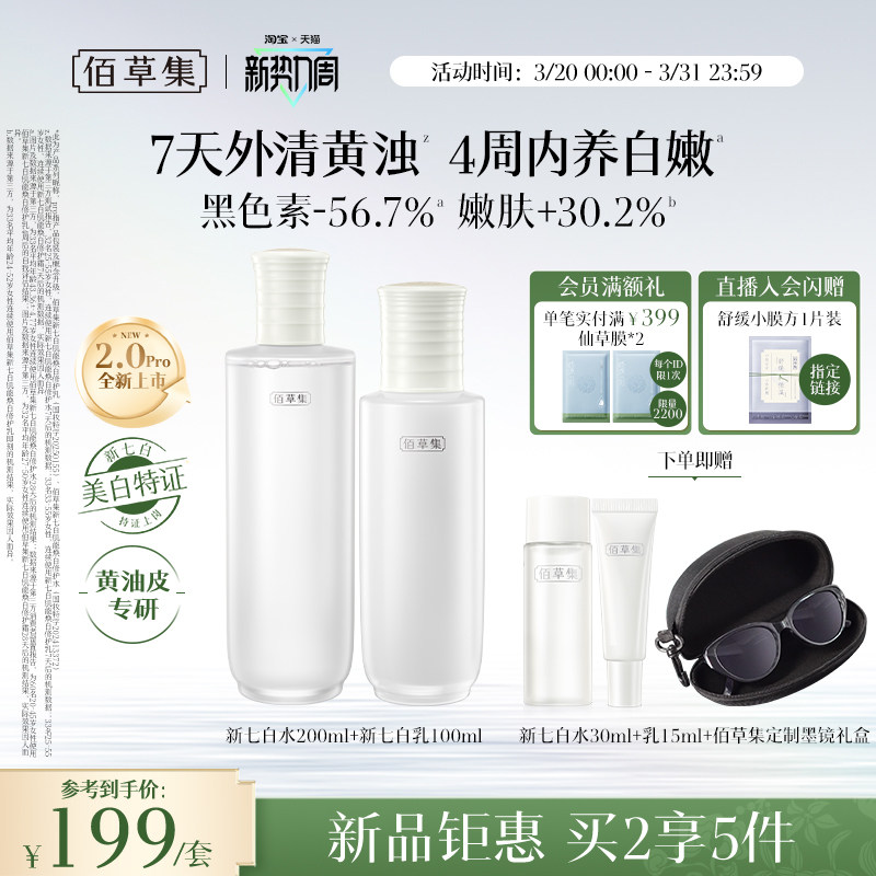 【新升级2.0pro特证】佰草集新七白美白祛斑水乳套装减黄提亮润