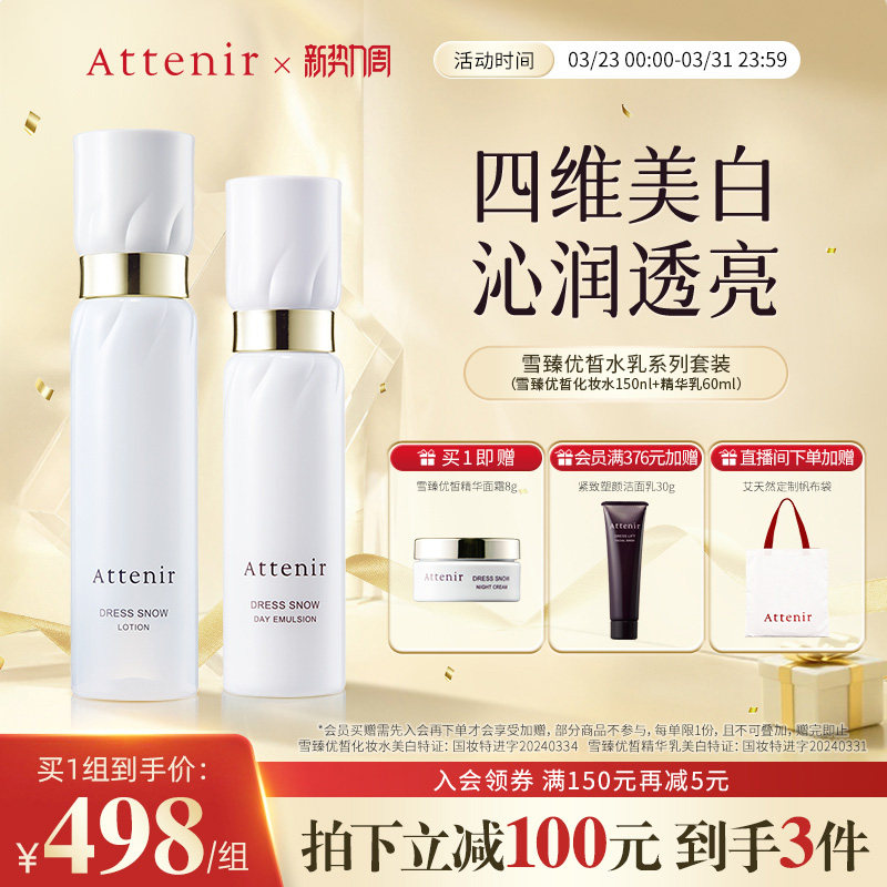 ATTENIR/艾天然雪臻水乳套装祛斑美白补水保湿修护紧致抗皱