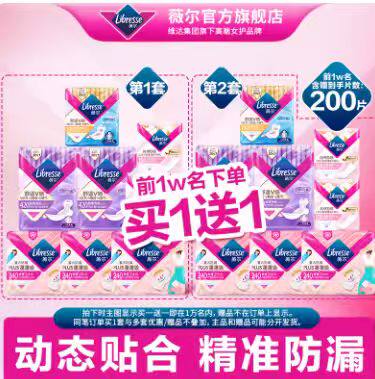【百亿】薇尔卫生巾小V巾日夜护垫组合8包100片小V巾姨妈巾防漏T4