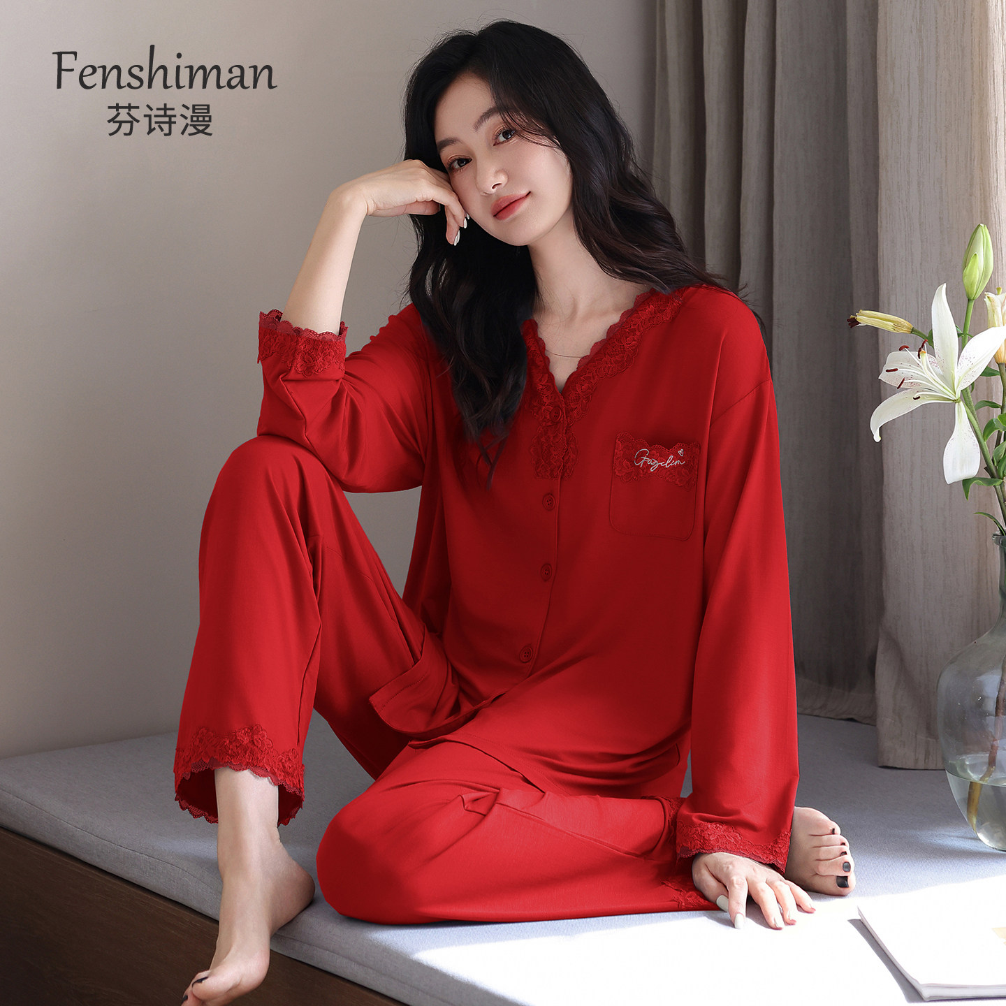 睡衣女款春秋季大红色莫代尔长袖马年本命年妈妈秋冬高级感家居服