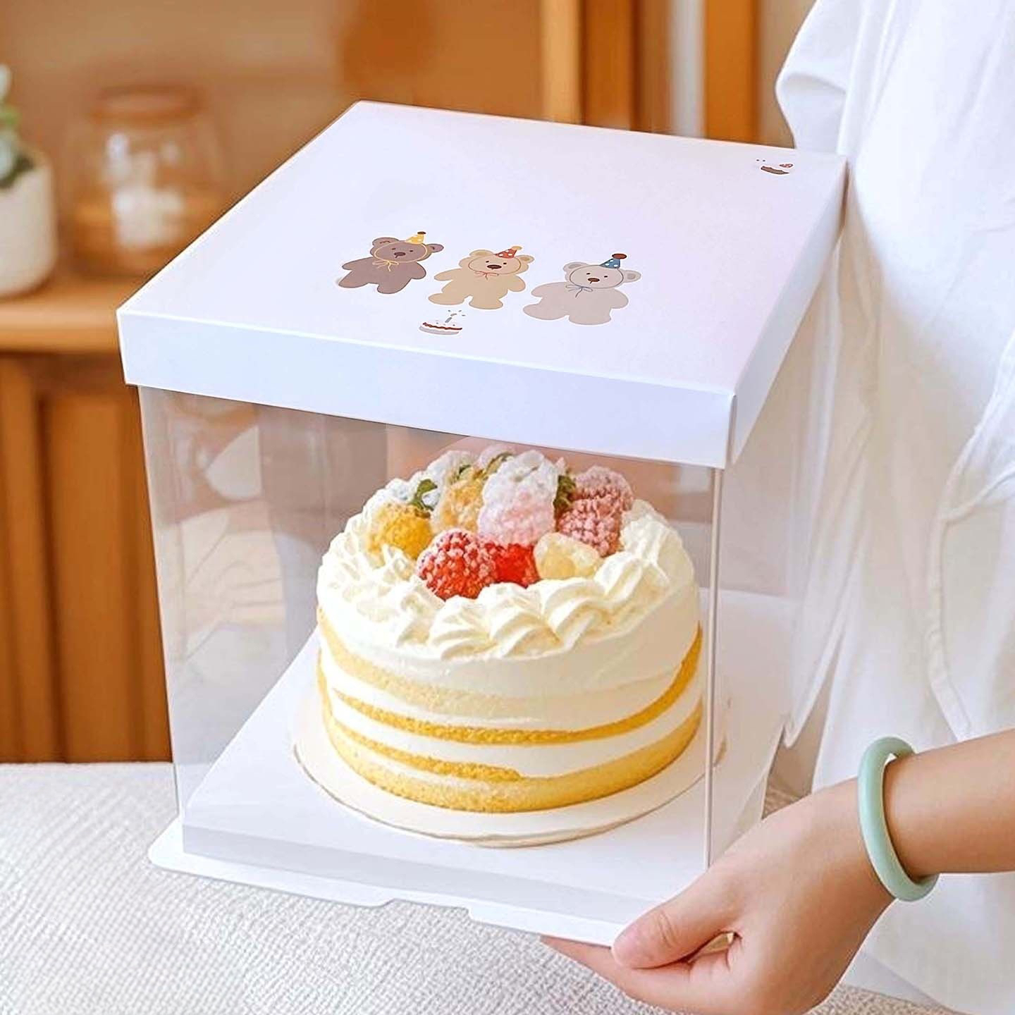 新款生日蛋糕盒6 8 10寸12蛋糕盒子包装盒批发半透明网红烘焙双层